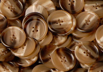单单讲纽扣就分了好多种:尿素扣、果实扣、金属扣、贝壳扣、牛角扣。尿素扣,树脂扣的一种,是目前最常见的中高档西服纽扣,学名叫做脲醛树脂扣。果实扣,果实扣是指的任何以天然果实、果壳等原料制作的纽扣,目前用在高档西服上的主要是象牙果实扣。金属扣,包括电镀金属膜扣和纯金属。纯金属的有铜扣、银扣、镀金扣、合金扣,常见的颜色有金属银色与金色.贝壳扣,也叫贝母扣,使用贝壳里面有珍珠光泽的一面打磨而成纽扣。因为贝壳颜色较浅,而且光泽绮丽多变,所以在搭配深色西服不太适宜,常用在浅色休闲西服中,反而是高档衬衫中使用更多。牛角扣,常见高档西服中最常使用的就是天然牛角扣,一般多使用黑色的水牛角。 天然牛角扣的辨认方法也比较简单: