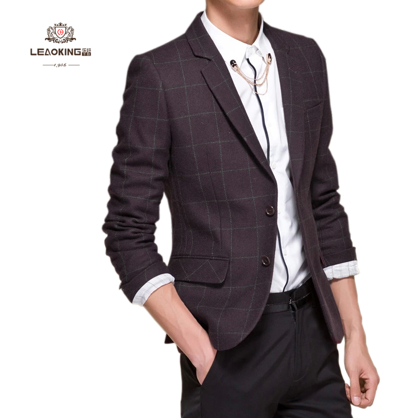 颜色大胆一点的格子西装套装更能为你赢来不少目光,内搭衬衫领带更为成熟,而内搭T恤敞开来穿的话,再搭配一双休闲鞋,就显的年轻许多,具有街头范。